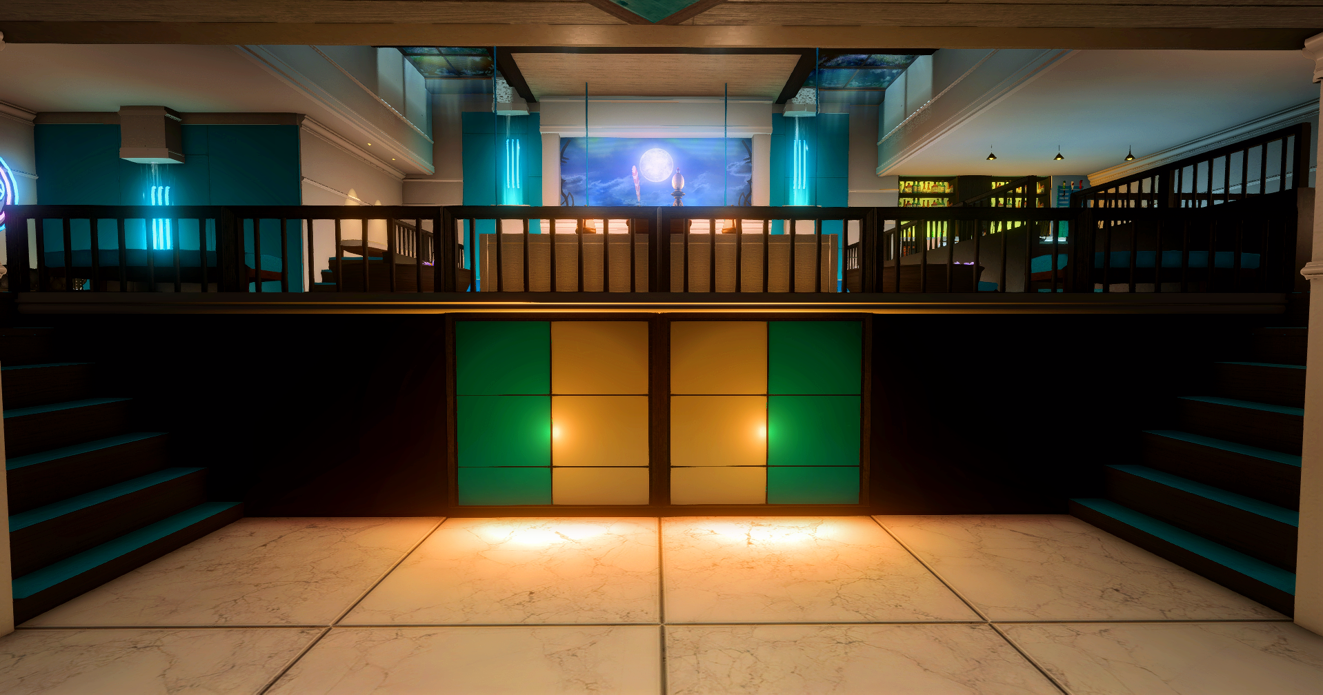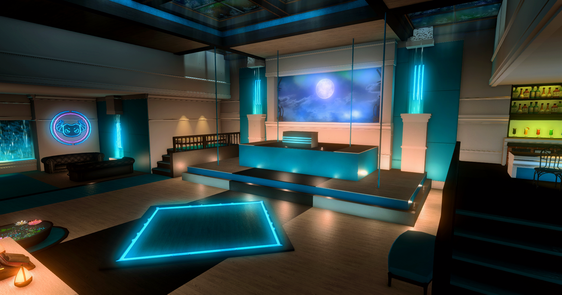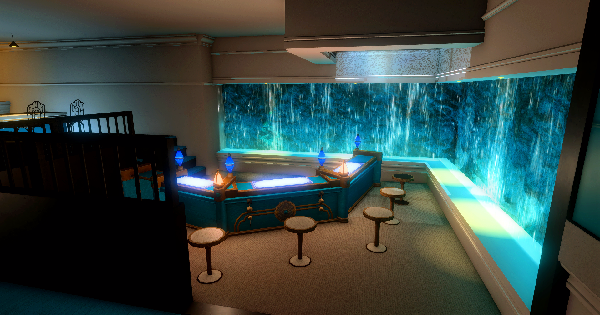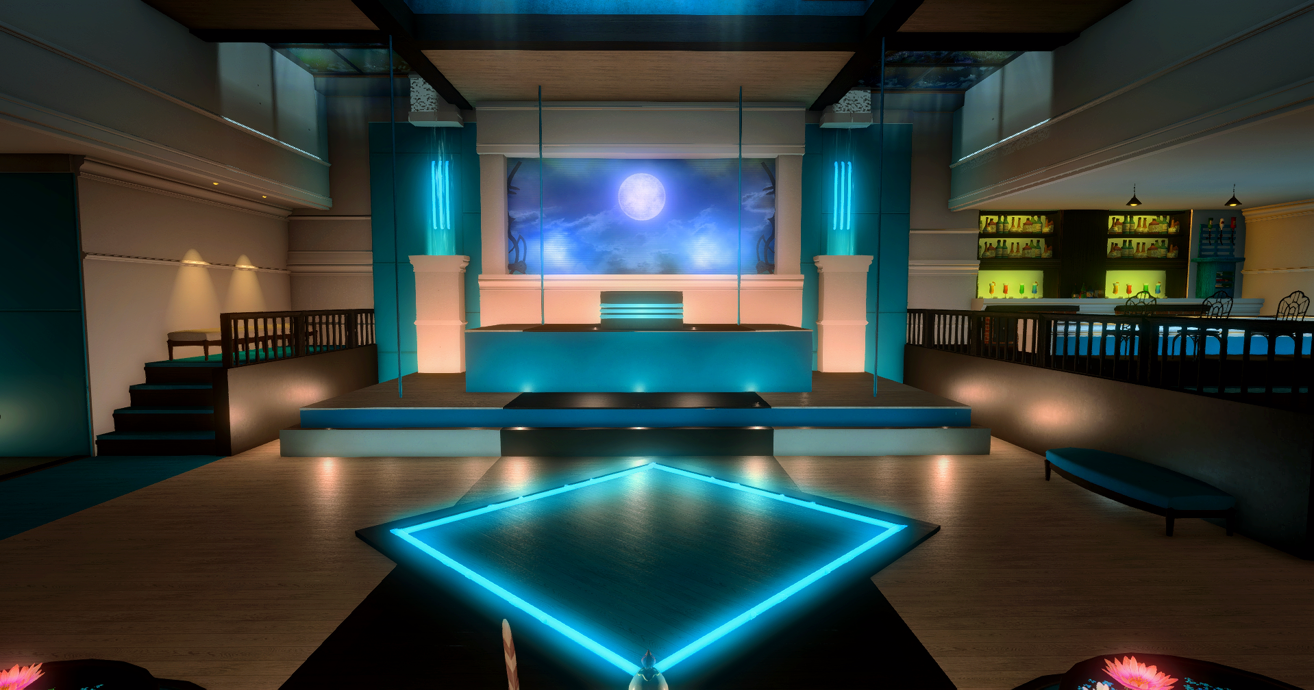 Blue Diamond leans into a cooler, jewel-toned venue look with luminous blue accents, polished finishes, and a more dramatic evening feel throughout the build.