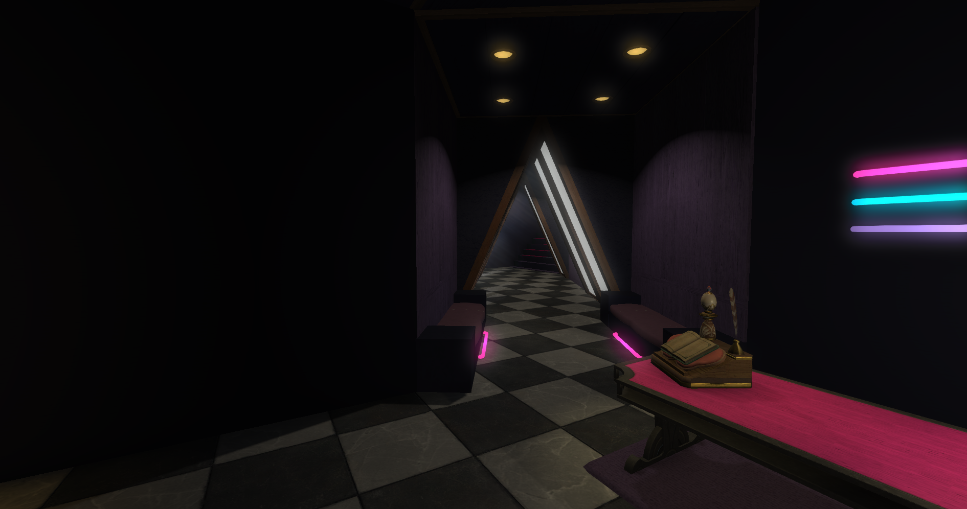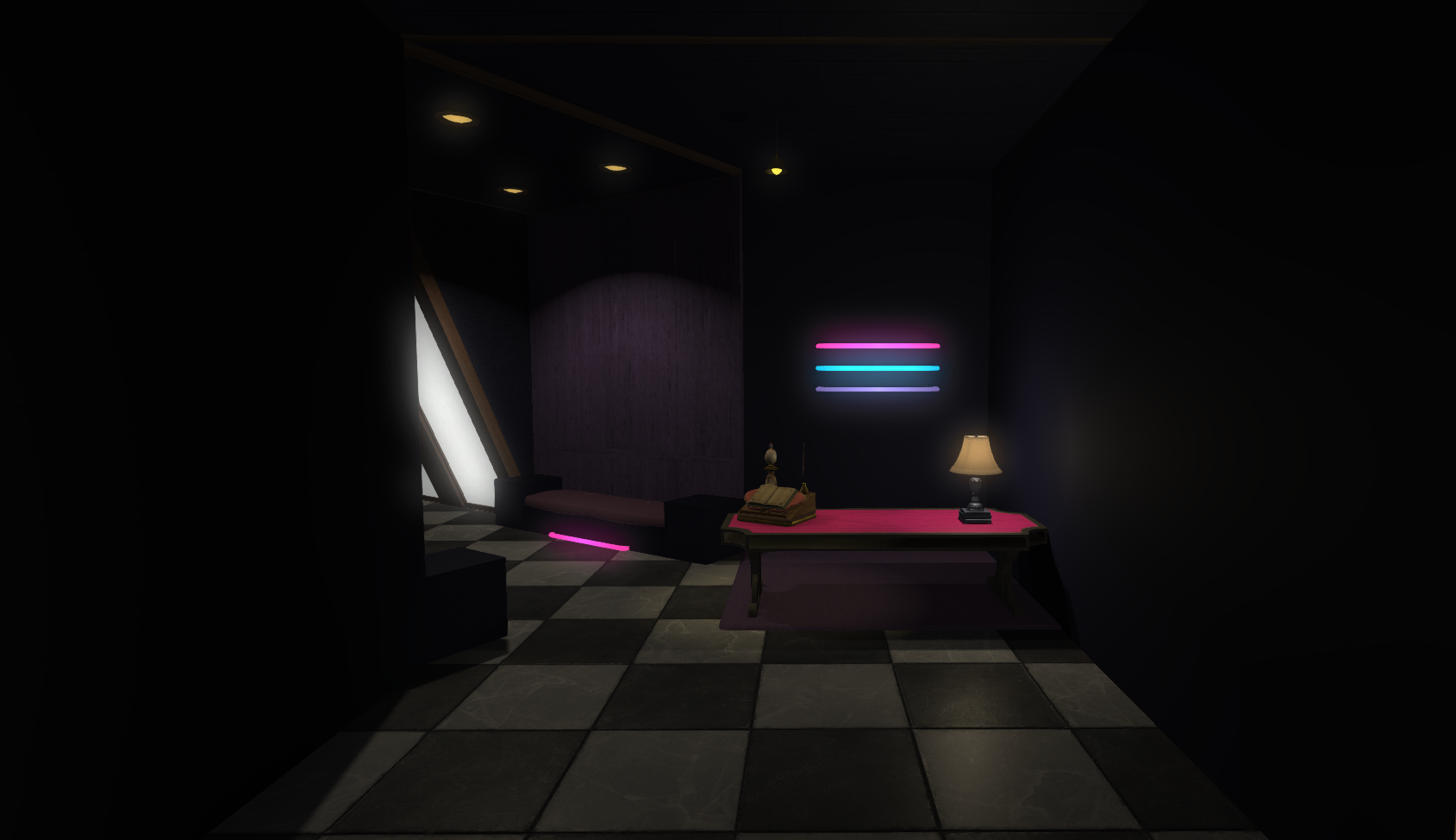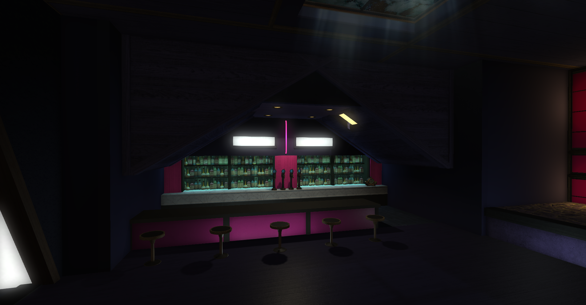 Club Trifecta leans into a cleaner, nightlife-oriented venue look with bold illumination, polished surfaces, and a stronger late-night entertainment mood across the full interior.